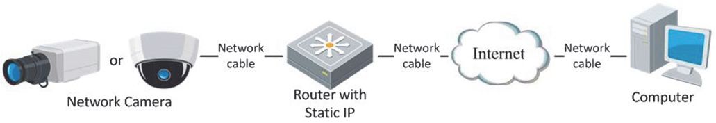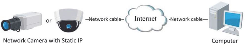 Verwenden Sie eine statische IP-Adresse von einem Internetdienstanbieter (Internet Service Provider, ISP). Mit statischer IP-Adresse können Sie die Netzwerkkamera über einen Router oder direkt mit dem WAN verbinden.