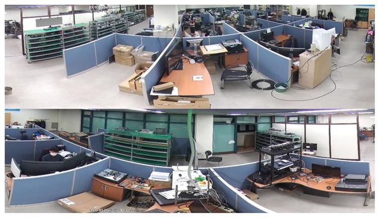 Die FishEye-Kamera kombiniert viele einzelne Bildausschnitte in runder Form um dann das tatsächliche Bild mit vielen Videoinformationen kreisförmig auszugeben. Die Bildkorrekturfunktion, die kreisförmige Bilder begradigt, wird als Entwarping bezeichnet.