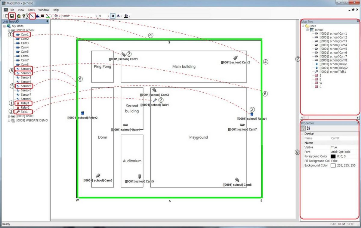 ⑨ Wenn alle Geräte registriert sind, klicken Sie bitte auf das Symbol [Save], um eine Karte zu speichern